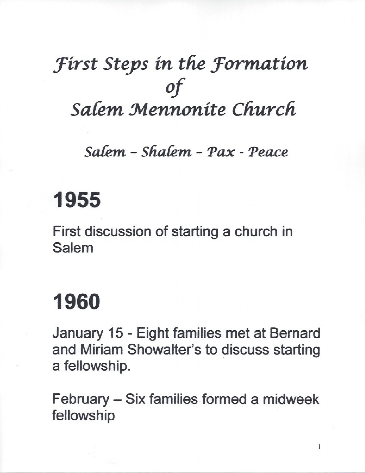 A brief history of Salem Mennonite Church, Salem, Oregon; 1955-2011.