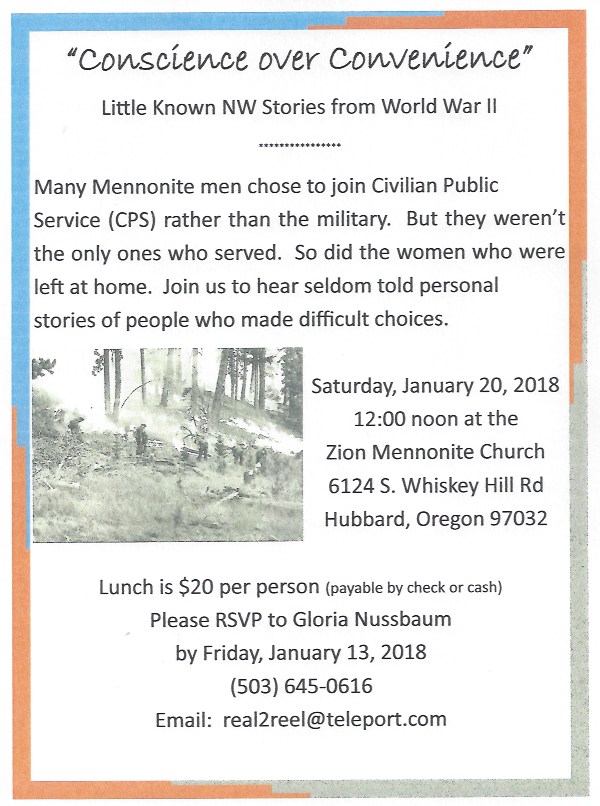 January 20 at Zion Mennonite Church, Hubbard, OR.